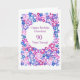 A very pretty, fully customisable Birthday Greeting Card, with a floral all-over pattern of pink, blue and purple flowers, from a handpainted paper collage, by Judy Adamson. The inside is left blank for your own message.