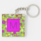 Flower Power Bright Green and Pink Monogrammed Key Ring