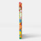 Different coloured flowers arranged in a row against a different coloured background in the colour of the 70s, the hippies.