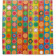 Different coloured flowers arranged in a row against a different coloured background in the colour of the 70s, the hippies.