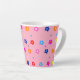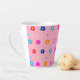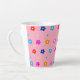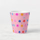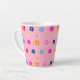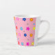 Colourful Flower Power pattern on pink background. Playful floral design.