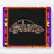 Did you decorate your car with flowers back in the day? Did it look somewhat like this? Or perhaps you would have liked it too. Set on a background of hippy flowers that echo the ones decorating the car. Stylised digital design for you to enjoy.