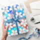 This festive wrapping paper is fun and funky with plenty of flower power. The little, white flowers are over a colourful watercolor background made up of blues and reds. This cheerful design is great for any occasion.