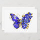 Jewelry, blue, sapphire, sparkling flower butterfly with wing decorated with blue, precious flowers with gold leaves on white background.