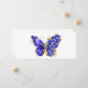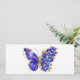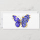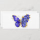 Jewelry, blue, sapphire, sparkling flower butterfly with wing decorated with blue, precious flowers with gold leaves on white background.