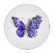 Jewelry, blue, sapphire, sparkling flower butterfly with wing decorated with blue, precious flowers with gold leaves on white background.