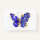 Jewellery, blue, sapphire, sparkling flower butterfly with wing decorated with blue, precious flowers with gold leaves on white background.