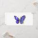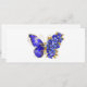 Jewellery, blue, sapphire, sparkling flower butterfly with wing decorated with blue, precious flowers with gold leaves on white background.
