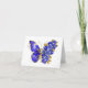 Jewelry, blue, sapphire, sparkling flower butterfly with wing decorated with blue, precious flowers with gold leaves on white background.