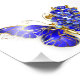 Jewellery, blue, sapphire, sparkling flower butterfly with wing decorated with blue, precious flowers with gold leaves on white background.