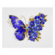 Jewellery, blue, sapphire, sparkling flower butterfly with wing decorated with blue, precious flowers with gold leaves on white background.