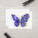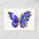 Jewellery, blue, sapphire, sparkling flower butterfly with wing decorated with blue, precious flowers with gold leaves on white background.