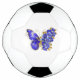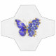 Jewelry, blue, sapphire, sparkling flower butterfly with wing decorated with blue, precious flowers with gold leaves on white background.