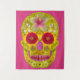 My Day of the Dead-inspired skull celebrates life and death with a collage of my paintings of a wide variety of flowers, and features hibiscus, zinnnia, plumeria, and many more.
