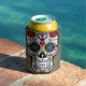 Perfect print for Dia De Los Muertos (Day of the Dead), pirate celebrations or just for everyday use. Features a sugar skull with red roses and more floral accents! Rustic Dia De Los Muertos Red Rose Sugar Skull Can Cooler
