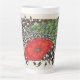 This tangle design was inspired by nature. There is a large red flower as the central point and all other design and colour was an offshoot of that main focus. The are multiple colours of brown, reds, black and white organic tubes, and greens.
