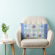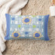 Add a cheerful touch to your space with this flower-themed lumbar pillow. It features playful yellow and blue sunflowers on a soft blue plaid background, accented with green and blue dots and solid blue edges for a cosy, decorative look.
