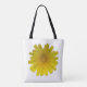 This tote bag features a design that is black on one side and white on the other with the same stylised bright yellow dandelion flower on both sides with brush-stroked edges. Pick the side that suits your mood!