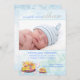 Whimsical illustration of flower turtle mummy & baby + light blue background on custom Baby Boy Photo Birth Announcements. Customise the lil turtle card with your own wording & photo for your special baby! Feel free to change the colours, sizes & fonts of the text as well. ((Contact ujean4791@gmail.com for custom work and/or matching items.))