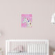 Pretty white unicorn with flowers in its mane on a pink background, on this art poster.
