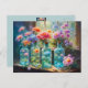 A beautiful scene of flower vases filled with stunning, vibrant blooms resting on a windowsill, bringing a touch of nature's elegance and freshness into the space. Wonderful card for any occasion! Custom back.