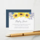 Slip these petite cards into your baby shower or bridal shower invitations when requesting that guests bring their gifts unwrapped. Country chic design features a cluster of yellow watercolor sunflowers, tiny navy blue and purple buds, and green foliage that matches our Flowerfields invitation collection. A sweet poem explains the "display shower" concept and request, and can be modified to suit your needs.