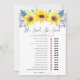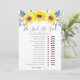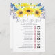 Country chic bridal shower game card matches our Flowerfields bridal shower collection and features a top border of yellow watercolor sunflowers and tiny navy blue buds. Double sided card lets you get two games in one! Front features He Said, She Said and reverses to a wedding themed word scamble. Personalise with the bride to be's name and date of shower. For additional customisation, feel free to contact me!