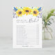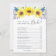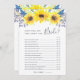 Country chic bridal shower game card matches our Flowerfields bridal shower collection and features a top border of yellow watercolor sunflowers and tiny navy blue buds. Double sided card lets you get two games in one! Front features How Well Do You Know the Bride and reverses to What's in your Phone. Personalise with the bride to be's name and date of shower. "What's in Your Phone" questions are completely customisable using the template fields on the page. For additional customisation, feel free to contact me!