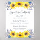 Invite guests to grab a favourite libation with our charming rustic wedding bar sign. 11x14 bar sign features "signature cocktails" in calligraphy script lettering. Personalise with your speciality drinks with six custom text fields. A chic addition to your wedding bar setup, this sign is adorned with borders of yellow watercolor sunflowers and navy blue wildflower buds that match our country chic Flowerfields wedding collection.