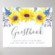Designed to match our rustic country Flowerfields wedding collection, this elegant botanical sign invites wedding guests to sign your guestbook. Personalise with two lines of custom text in calligraphy script and traditional serif lettering (shown with "Guestbook; please leave your wishes for the new Mr. and Mrs. [name]"), adorned with yellow watercolor sunflowers and navy blue wildflower buds.