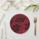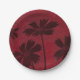 Flowerhead Silhouettes on Crimson Background Paper Plate