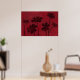 Flowerhead Silhouettes on Crimson Background Poster