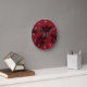 Flowerhead Silhouettes on Crimson Background Round Clock