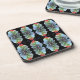 The colorful abstract pattern by ZoeSPEAK on this Set of Six Coasters began as Zoe’s original photograph of a flowering cactus plant. The pink flower buds are emerging from the bluish green, disk shaped leaves of the plant. An almost black background completes this boho pattern.