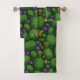 Flowering opuntia on dark green bath towel set