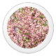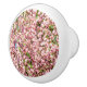 Flowering Plum. Blossoms flowering plum shrubs also known as flowering almond. Pink festive flowers against blue and green background. Spring theme. This is a plum tree, this is an almond tree, this is a cherry tree. This tree is everything. It originates from China and is scientifically called Louiseania triloba, Amygdalus triloba and Prunus triloba. It is considered to be a shrubby cherry, some people call it sakura. Very elegant and decorative plant. Round aspect ratio products and souvenirs.
