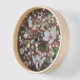 Floral clock featuring a a photo of beautiful blossoming plum tree branch on a dark green background. A touch of spring vibes to your home decor, a lovely seasonal gift for your loved ones.