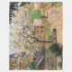 Flowering Plum Tree, Eragny. Camille Pissarro. Cute spring landscape in warm colours. The garden near the house is surrounded by a high fence. In the centre there is a flowering tree. A woman is walking along the road. Reproduction of famous works of art images in the public domain.