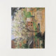 Flowering Plum Tree, Eragny. Camille Pissarro. Cute spring landscape in warm colours. The garden near the house is surrounded by a high fence. In the centre there is a flowering tree. A woman is walking along the road. Reproduction of famous works of art images in the public domain.