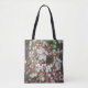 Floral bag featuring a photo of beautiful blossoming plum tree branch on a dark green background. A beautiful seasonal gift for gardeners and nature lovers. Please personalize it with your monogram. For further modifications (font style, font color, text position) click "Edit design”.