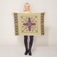 This blanket or throw blanket's design, art by Kristie Hubler, involved inspiration from jewellery and textiles from all around the world, around the equator, from archways, to flowers, to swags of floral sprays with dangling jewels, to eggs with flowers and jewels placed inside with a ribbon wrapped around it. In cool colours of purples, violets, sage, chartruese, and a muted periwinkle, on a tan background.