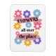 Cute retro flowers and the text: Flowers all over the place. For everyone, who loves flowers and cheerful designs.