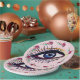 Elegant artsy custom paper plates. Blue eye drawing and watercolor flowers, custom background colour paper plates.