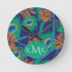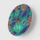 Flowers And Feathers | Monogram Round Clock