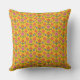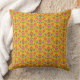 A pretty Throw Pillow or Cushion, with a colorful pattern of Pink and Orange Flowers and Polka Dots on a Golden Yellow Background. Part of the Posh & Painterly 'Rangoli' collection, this pattern will fit any cushion.