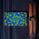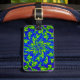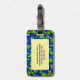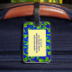 Make your luggage stand out on an airport carousel with unique tag designs! This colourful luggage tag features a wild abstract circular pattern of luminous greens and blues swirling around a central flower with kaleidoscopic movement. The outside edges have shades of purple and magenta. Customise the text on the reverse side with your personal information.