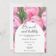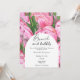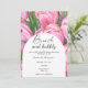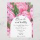 Watercolor pink peony flowers theme bridal shower card featuring watercolor illustration of bouquet peonies with greenery. Elegant calligraphic handwriting, which is perfect for spring, summer or autumn weddings.