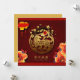 Design with traditional Chinese floral decoration + Chinese lanterns + golden Tiger paper-cut in central position with a branch of peach tree + "Happy New Year" in English and Chinese. Design on square flat card. You can easily change colour background by clicking the customise button. Matching greeting card, holiday postcard and red envelope.