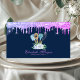 Watercolor bakery hand tools, flowers, and violet glitter drips on a navy blue background.