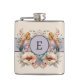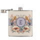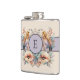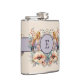 Flowers feathers add initial purple hip flask